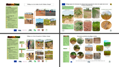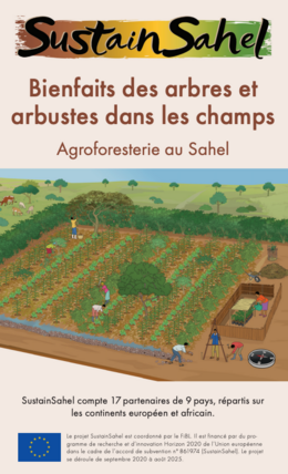 Le poster, disponible en anglais et en français, présente le projet SustainSahel. Le projet combine les sciences naturelles et sociales avec une approche transdisciplinaire qui réunit chercheurs et agriculteurs pour mettre en œuvre des systèmes alimentaires durables. L'intégration systématique des cultures, des arbustes, du bétail et des personnes, ainsi que les pratiques de l'agriculture biologique et de conservation, sont les typologies de reconception et les interventions les plus prometteuses pour une intensification durable.