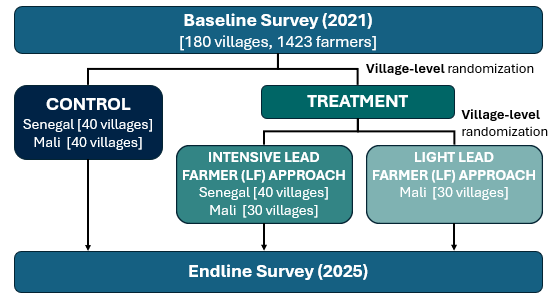 Preliminary findings are available as of July 2025 and reveal considerable impacts. The interventions employed a lead-farmer model to promote a suite of agroecological practices—including nitrogen-fixing shrub integration, composting, mulching, manure application, and legume-based rotations—aimed at improving dryland productivity and resilience. Specifically, two advisory modalities were tested: a high-intensity modality featuring continuous coaching and demonstration support for lead farmers, and a lighter-touch modality relying more on digital and print-based dissemination besides some limited demonstration for lead farmers. Across 180 villages and 1,423 households, both modalities significantly improved farmer awareness, exposure, and practice adoption.